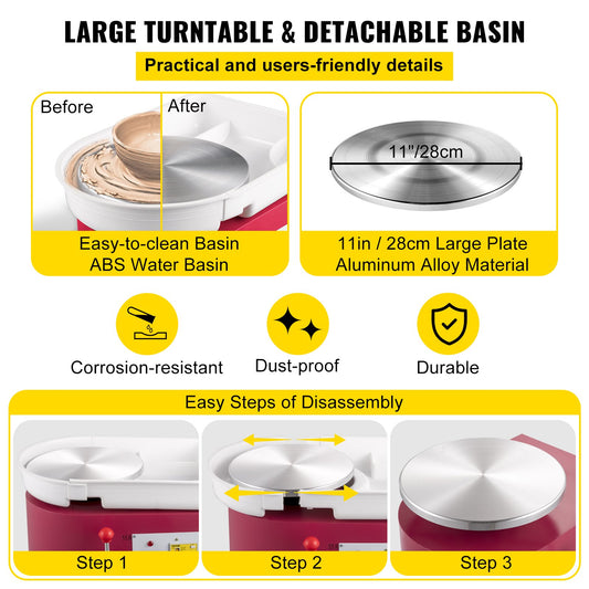 VEVOR 11 inch Pottery Wheel with Detachable Foot Pedal Control